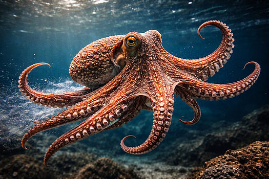 Bạch tuộc có một cách bơi khá “ngầu”: phản lực. Nó hút nước vào cơ thể, rồi phun mạnh ra phía sau để lao đi như một chiếc tên lửa nhỏ dưới nước.