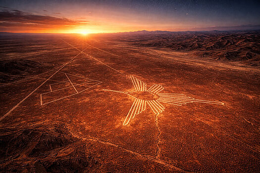 Bạn thử tưởng tượng một cảnh rất lạ thế này: đứng giữa một sa mạc khô khốc, xung quanh chỉ có đá và cát, không cây cối, không sông suối, và gần như không có dấu hiệu của sự sống. Nhưng nếu có ai đó đưa bạn lên một chiếc máy bay và nhìn xuống từ trên cao, toàn bộ khung cảnh bên dưới bỗng biến thành một “bức tranh khổng lồ” với những đường thẳng kéo dài hàng chục kilomet, những hình xoắn ốc kỳ lạ, và cả những con vật được vẽ với độ chính xác đáng kinh ngạc như chim ruồi, nhện hay khỉ.